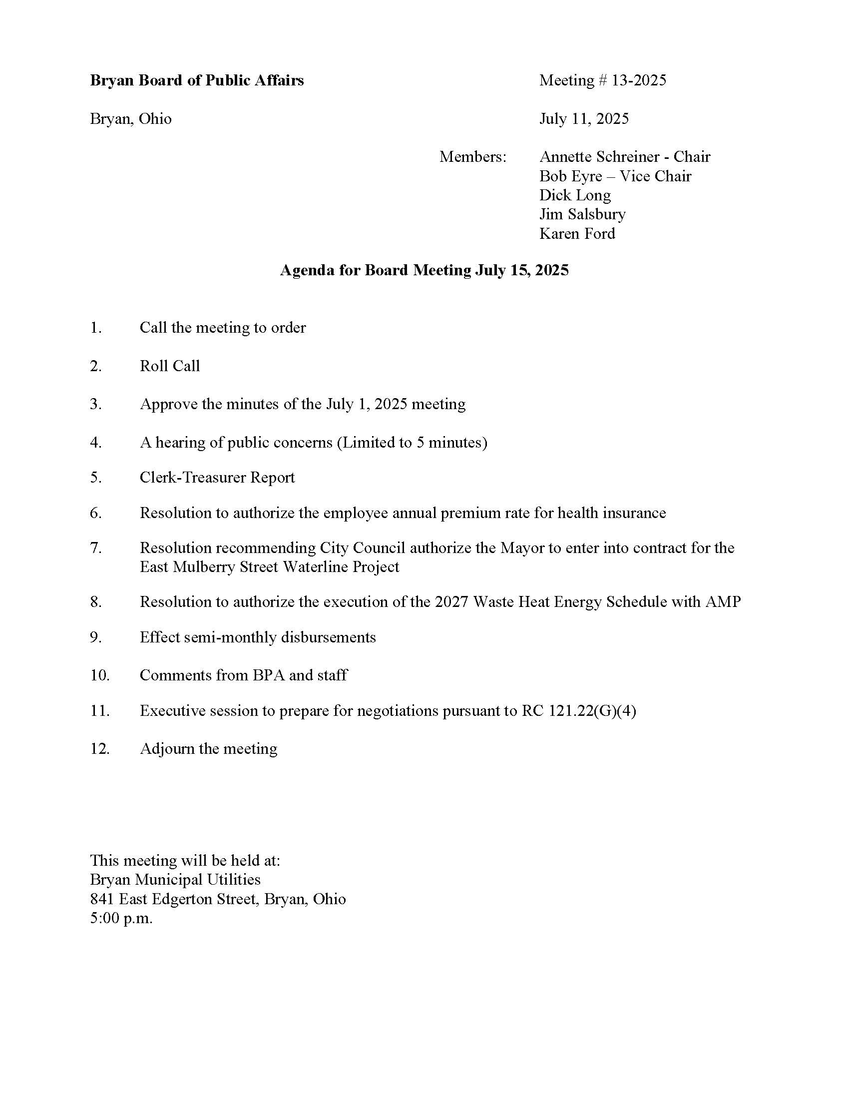 Bryan Board of Public Affairs – Bryan, Ohio – 07/15/2025 – Agenda BMU2025-07-11T11:53:13-04:00July 11th, 2025| Share This Story, Choose Your Platform! FacebookXRedditLinkedInTumblrPinterestVkEmail