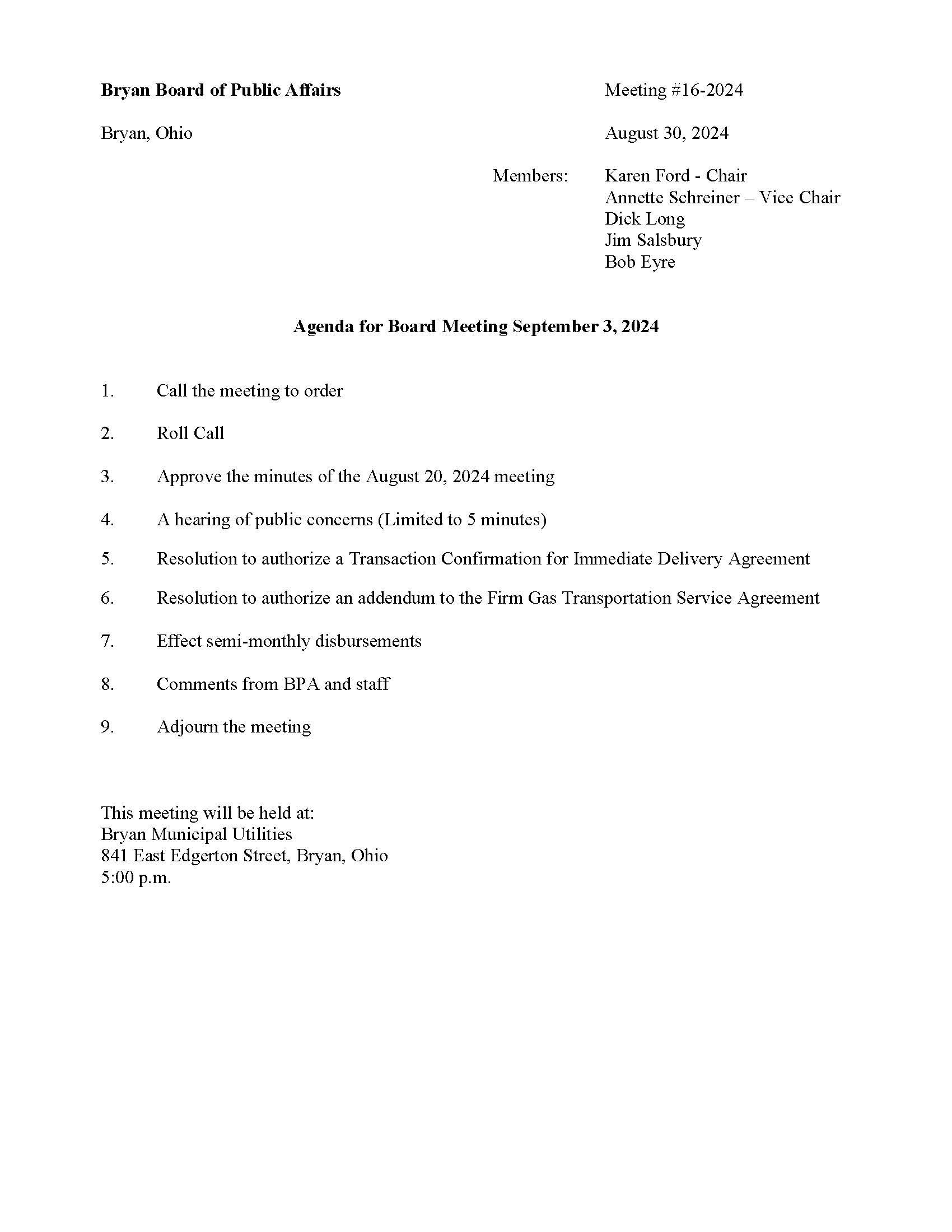 Bryan Board of Public Affairs – Bryan, Ohio – September 03, 2024 – Agenda BMU2024-09-03T11:27:58-04:00September 3rd, 2024| Share This Story, Choose Your Platform! FacebookXRedditLinkedInTumblrPinterestVkEmail