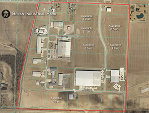 The City of Bryan purchased 80 acres to develop a second industrial park on the north side of Bryan in 2014. Four 20-acre lots are provided with municipal electric, water, communications, sanitary and storm sewer. Natural gas for the sites is available from the Ohio Gas Company.