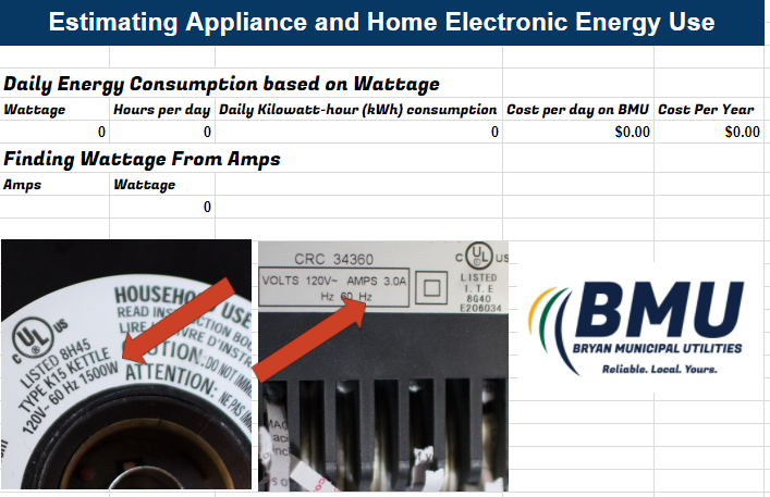 Bryan Municipal Utilities is committed to energy efficiency and energy conservation. We offer several programs to help our customers save energy, save money and save the environment. Try our online energy profile. The energy profile will help you analyze your annual energy use and the costs of each energy system and major appliance in your home. The personal energy profile will also recommend specific steps you can take to reduce energy costs and save money. Link to Energy Yardstick