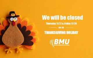 BMU will be closed Thur. 27th, & Fri. 28th, in observance of the Thanksgiving holiday.