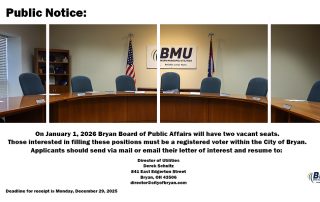 PUBLIC NOTICE: On January 1, 2026, the Bryan Board of Public Affairs will have two vacant seats.